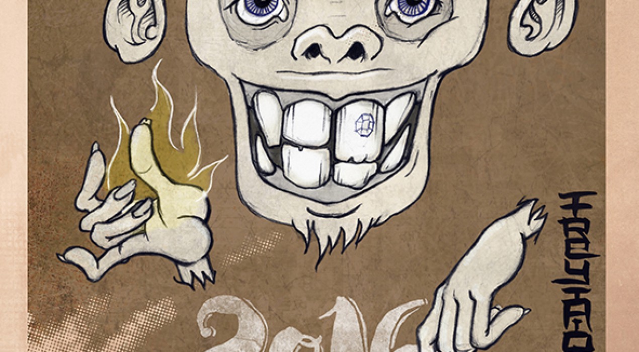 HAPPY NEW!!! YEAH! funkenäffchen ’16 bleistift / pinselstift / foto / karton 01. januar 2016